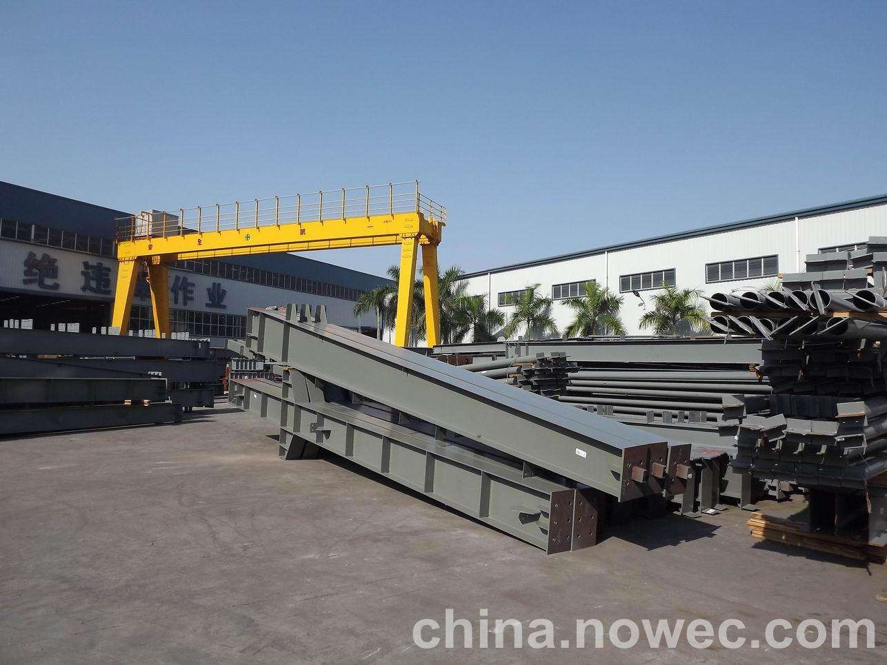 条状单元一般沿长跨方向分割,其宽度约为1~3个网格,其长度为l2或l2/2(l2为短跨跨距)。块状单元一般沿冷水江网架平面纵横向分割成矩形或正方形单元。每个单元的重量以现有起重机能胜任为准。条(块)与条(块)之间可以直接拼装,也可空一网格在高空拼装。由于条(块)状单元是在地面拼装,因而高空作业量较高空散装法大为减少,拼装支架也减少很多,又能充分利用现有起重设备,故较经济。这种安装方法适用于分割后网架的钢度和受力状况改变较小的各类中小型网架,如两向正交正放四角锥、正放抽空四角锥等网架。
